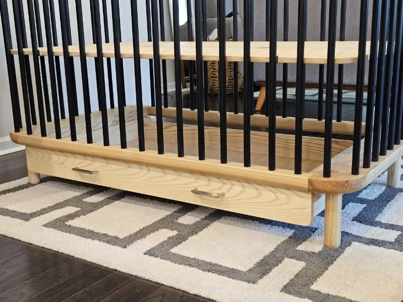 We wanted to do something unique for our future baby’s crib. This crib was made by hand by Starr Woodworks, and is made to grow with the baby while also using creative, hands-on symbolism about the adoption journey in a way that will help teach the child about their story as they grow up.